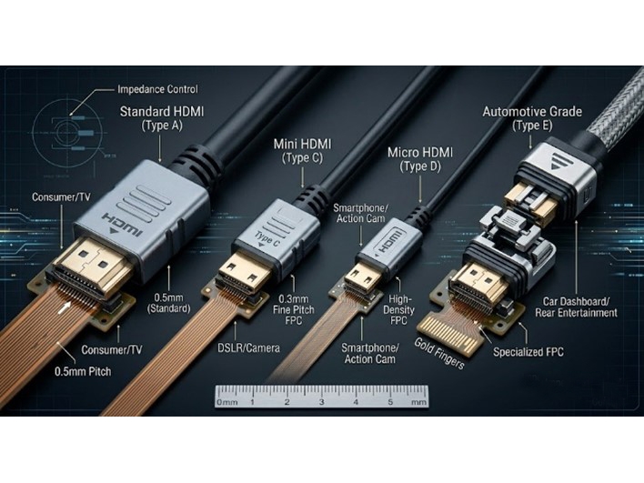 HDMI 連接器完全指南:從 Type A 到 Type E 的物理介面與電氣規格詳解