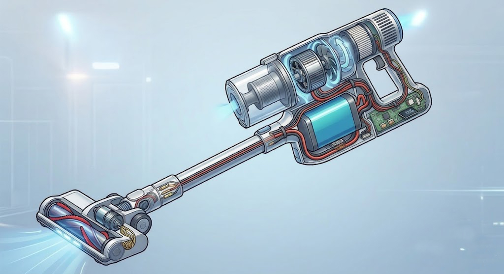 吸塵器(尤其是現代的無線手持式)內部的電子結構相當精密,為了在高轉速馬達、感測器及電池管理系統(BMS)之間傳輸電流與訊號,會用到多種高性能的連接器與線材。